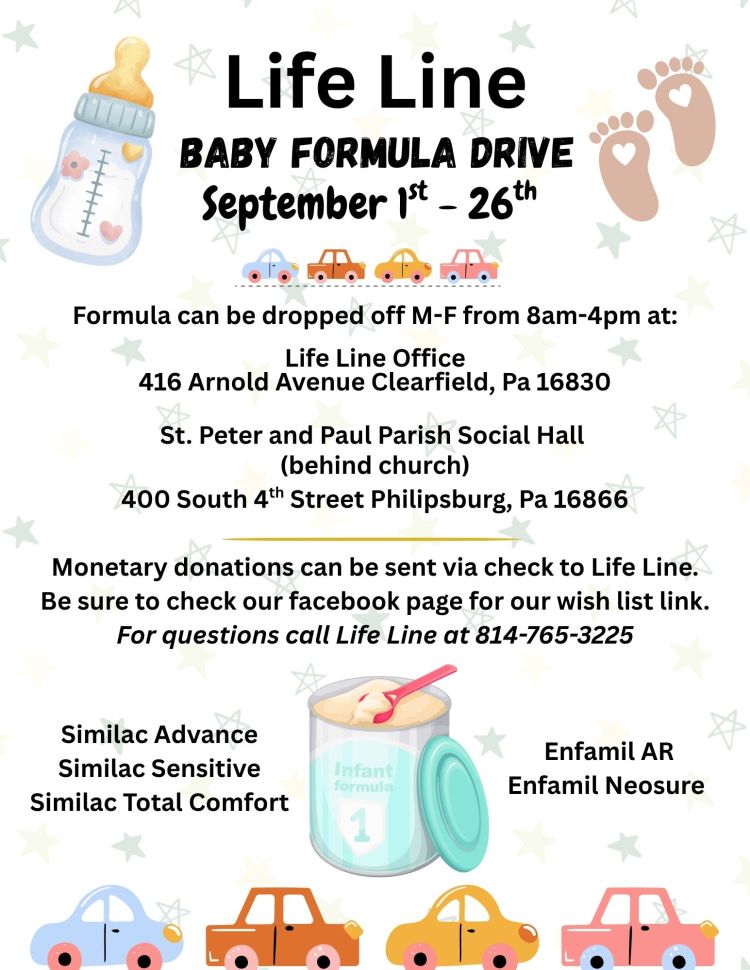 The Saints Peter & Paul Knights of Columbus has partnered with Life Line Pregnancy and Infant Services in support of their annual Baby Formula Drive. This year, our parish hall has been designated as the official collection point for our area. The Drive will run from September 1st through the 26th. All donations will be collected using the specially marked drop-off box located just outside the main entrance to the parish hall.