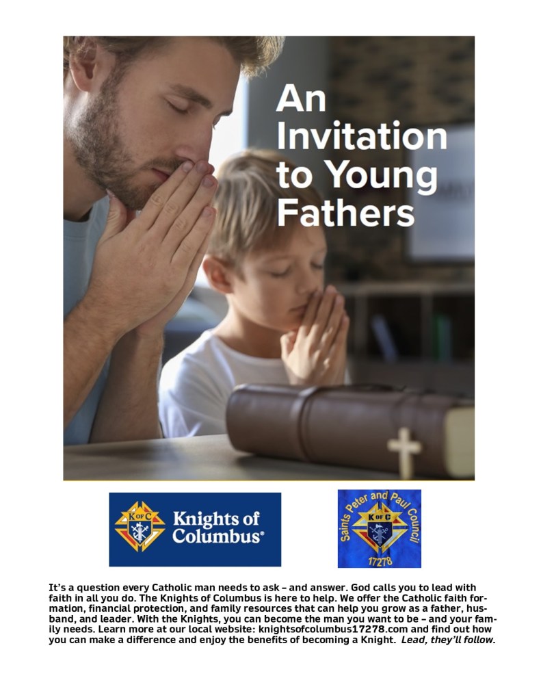 The Saints Peter and Paul Knights of Columbus is introducing a monthly 50/50 lottery beginning in June. Each “rip-off” style ticket contains 10 numbers (10 chances to win) and will pay $100 to the lucky winner. The winning number will be determined by the official Pennsylvania Lottery PICK 3 drawing held at 7:00 p.m. on the last day of the month. Tickets are $2.00 apiece and only 100 tickets will be sold each month. The first drawing will take place on June 30, 2022, and the winning ticket must be turned in to one of our Knights to collect your $100. Tickets are on sale now. Click here to learn more.